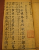 清代的三字经注解,作者摄于哈佛大学燕京图书馆。《三字经》的书名来自于这本书的独特风格――整本书的每一句话都只有三个字。自13纪以来,它一直是一个经典的中国文学读本。虽然它最初是在中国发给学童的入门书,但它绝不仅仅是一个识字读物。它更像一本“袖珍百科全书”,概述了中国的历史和重要历史著作,包括儒学的基础、数学和科学基本知识、以及大量的道德训诫。截止20世纪初,学习《三字经》一直是中国人接受教育的第一步。学习经典的中文文本一直是中国大陆、台湾、新加坡、马来西亚和海外华人社区里语文教育的重要组成部分。